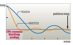 Još jedna važna osobina inverterskih klima uređaja jeste brzina postizanja željene temperature prostorije koja je 4 puta brža nego kod ON-OFF kompresora.